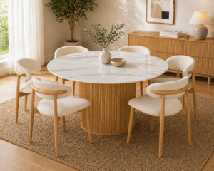 Tobern Round Dining Set 6 Seater – Ceramic Marble Table with Fabric Chairs❤PreSale Available EarlyMay❤