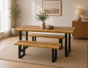 Tasman Solid Pine Dining Set with Benches – 1.6m