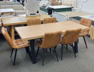 Russell Dining Table Oak Color With 6 Black PU Chairs