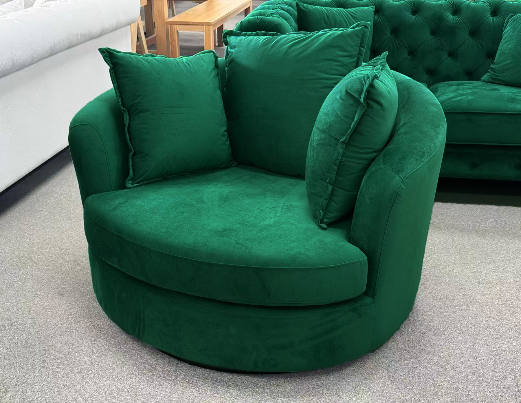 Amour Swivel Round Sofa Loveseat Green Velvet