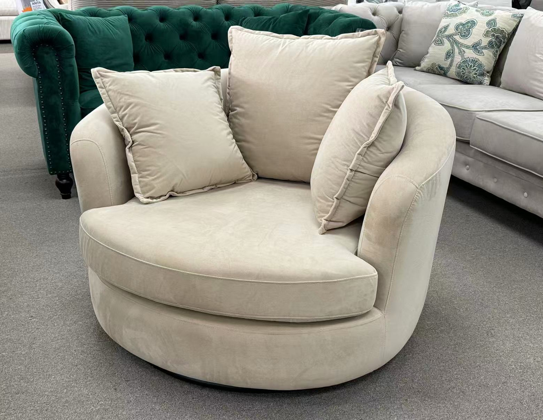 Wrap yourself in comfort with this ultra-cozy Swivel Cuddler Chair, designed to elevate both your relaxation and your room’s aesthetic. Featuring an effortlessly stylish rounded silhouette and a luxuriously soft-touch fabric, this chair is made for quiet reading sessions, snuggle time with your kids, or cozy moments with your pet.