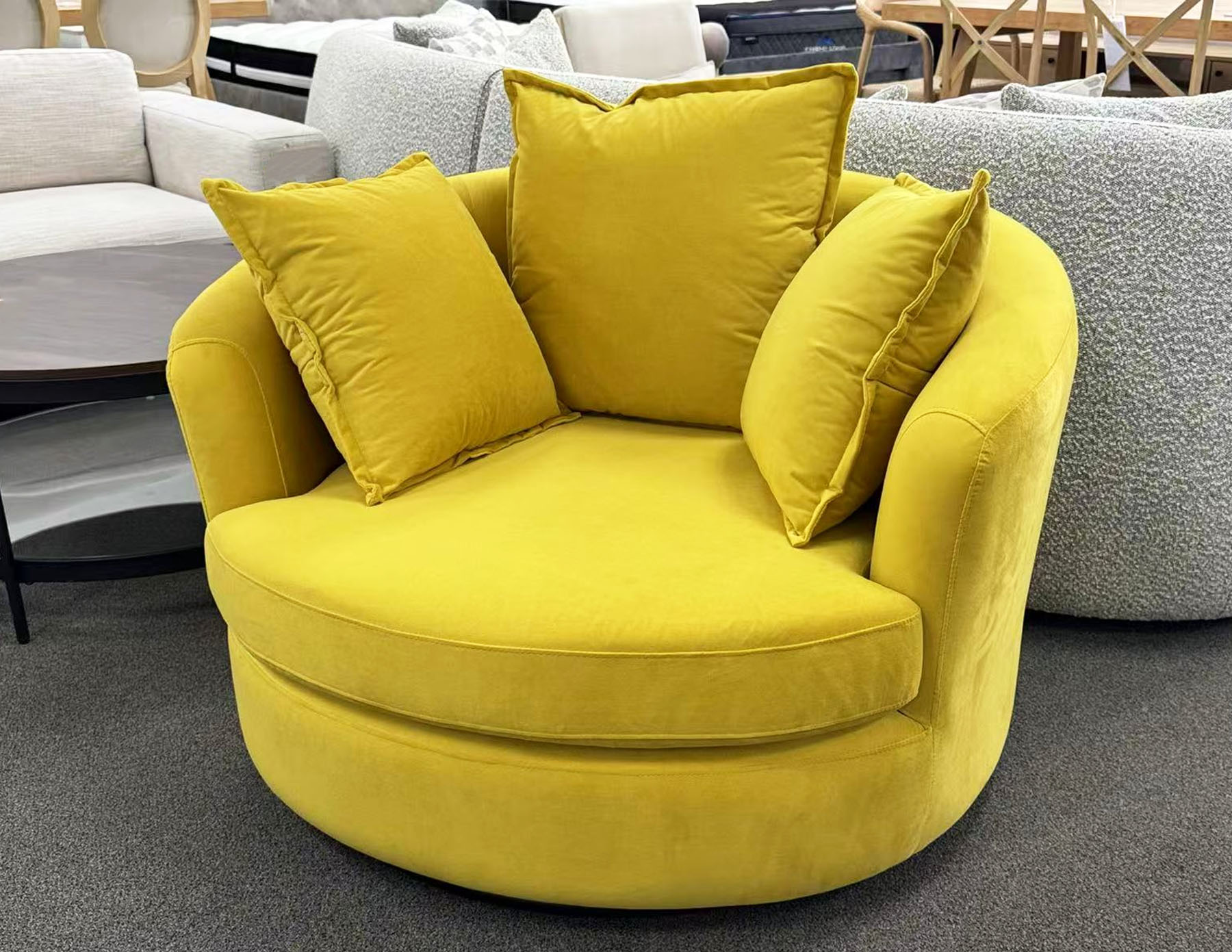 Wrap yourself in comfort with this ultra-cozy Swivel Cuddler Chair, designed to elevate both your relaxation and your room’s aesthetic. Featuring an effortlessly stylish rounded silhouette and a luxuriously soft-touch fabric, this chair is made for quiet reading sessions, snuggle time with your kids, or cozy moments with your pet.