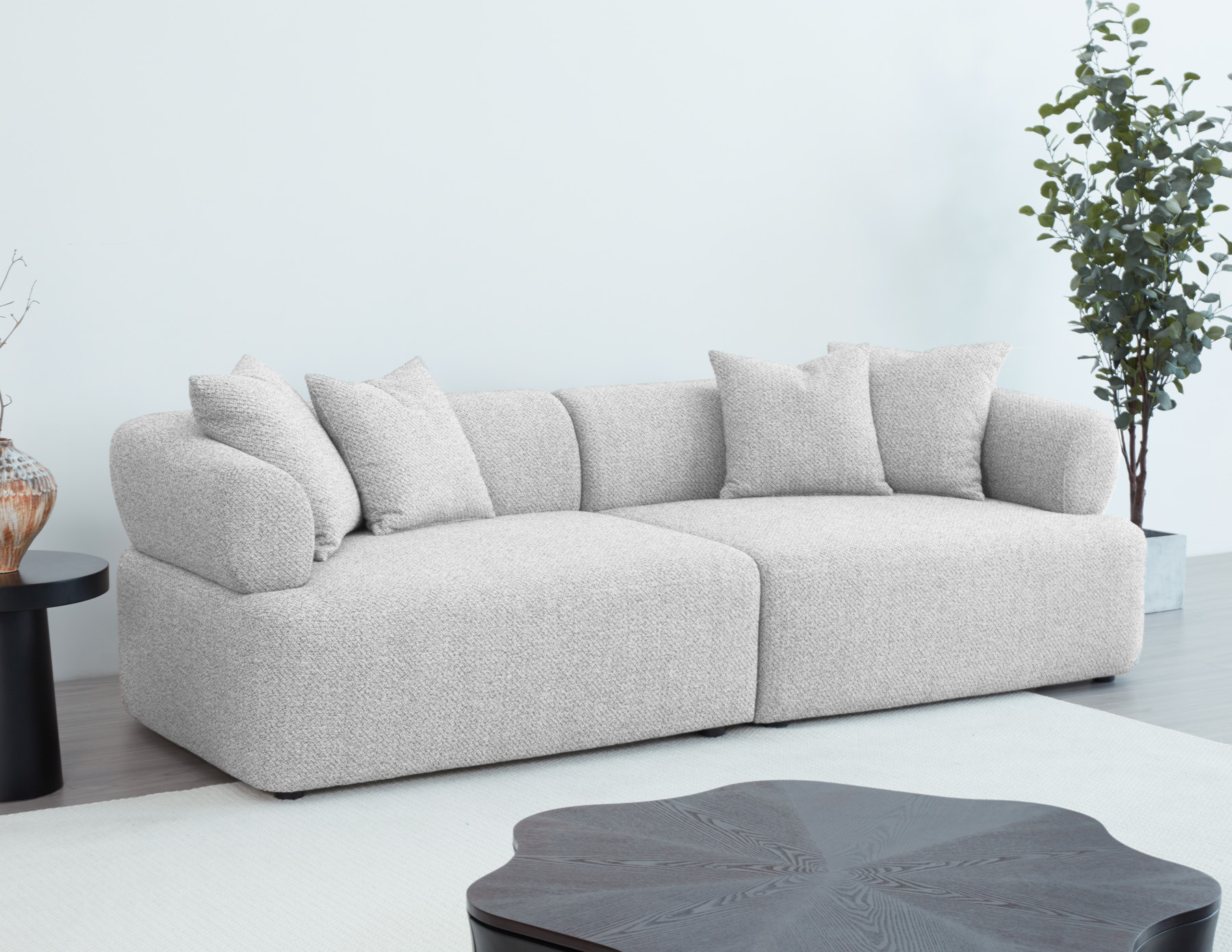 Designed for modern living, the Article Sofa combines generous proportions with soft, sculptural comfort. Upholstered in a luxurious bouclé fabric, this statement piece brings texture, warmth, and effortless elegance to any living space.