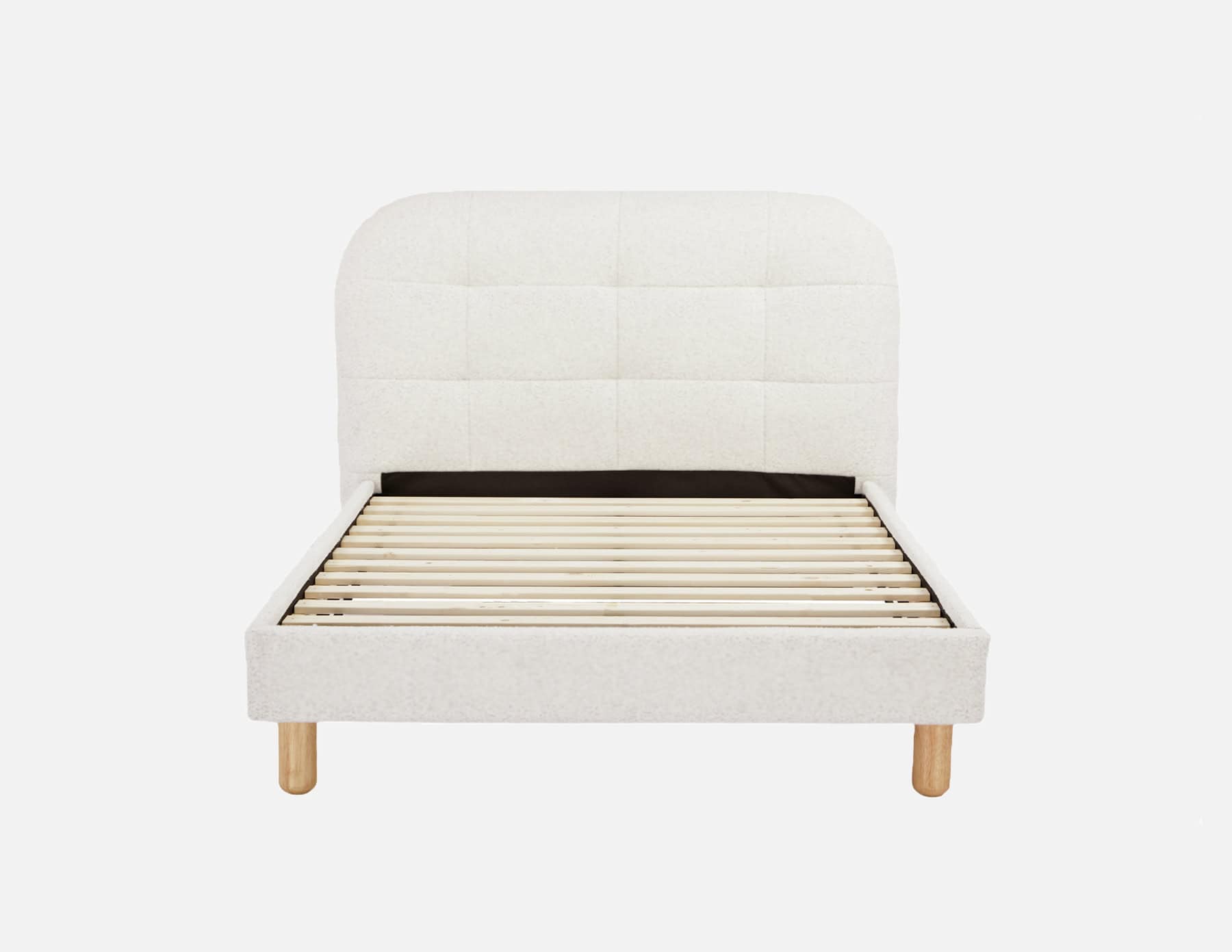 Crafted with solid wood legs and durable solid pine wood slats, the Celine Bed combines elevated design with lasting support. The natural wood details ground the piece with warmth, while the textured bouclé upholstery delivers a modern, high-end aesthetic.