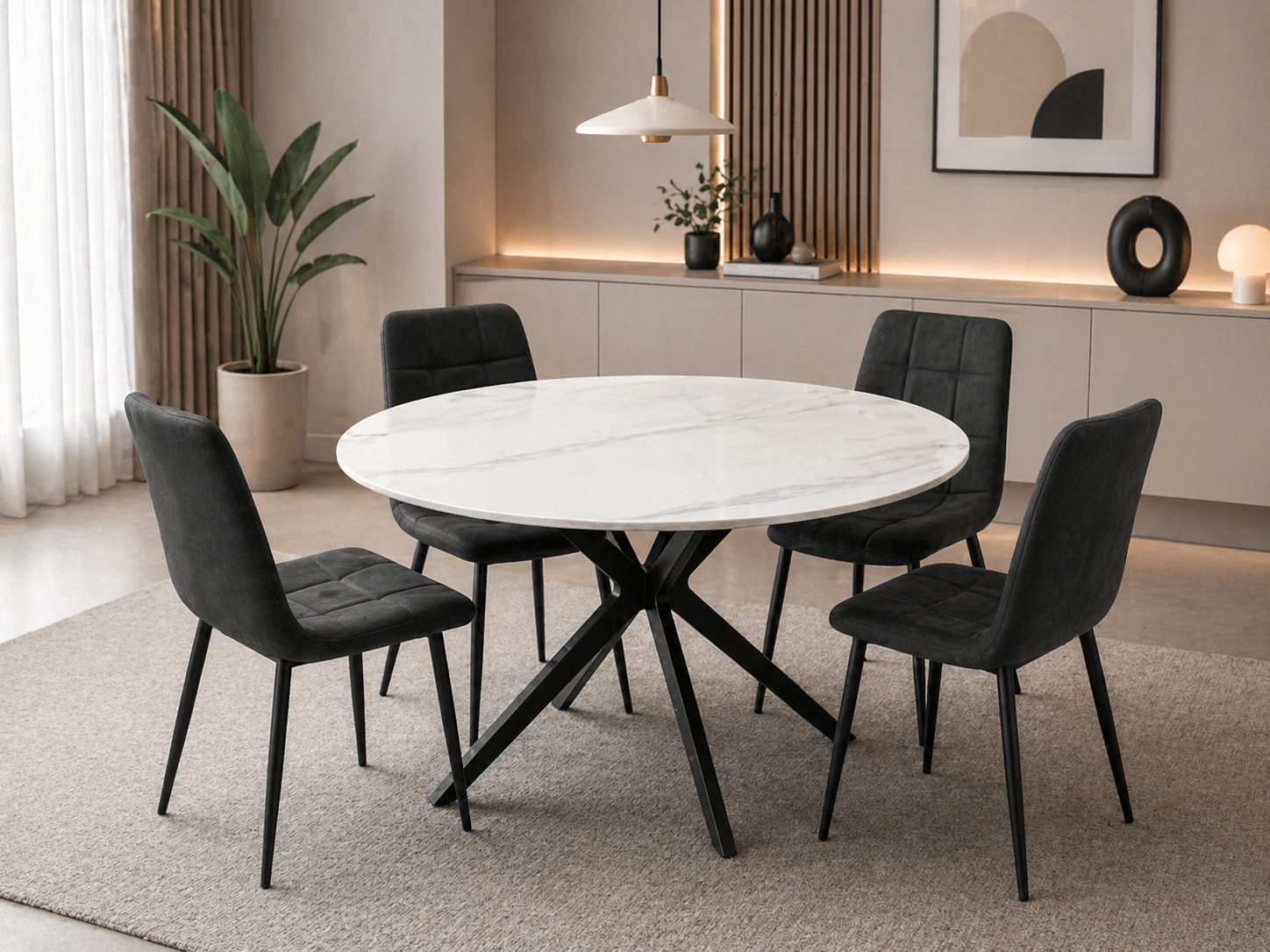 Modern Ceramic Marble Dining Set – Round Table with Kodak Chairs