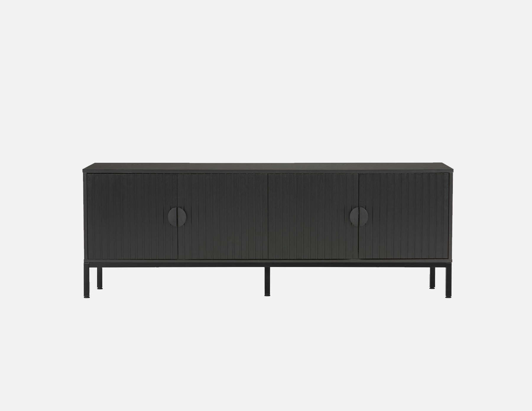 Bring style and functionality to your living room with our exquisite vertical-striped four-door TV unit stand. The bold vertical-striped door design adds a sleek, modern aesthetic that easily complements any decor, while the semi-circular metal handles offer both a unique visual appeal and smooth functionality. Perfect for your home, this TV unit stand elevates your home with its striking design and practical storage capabilities.