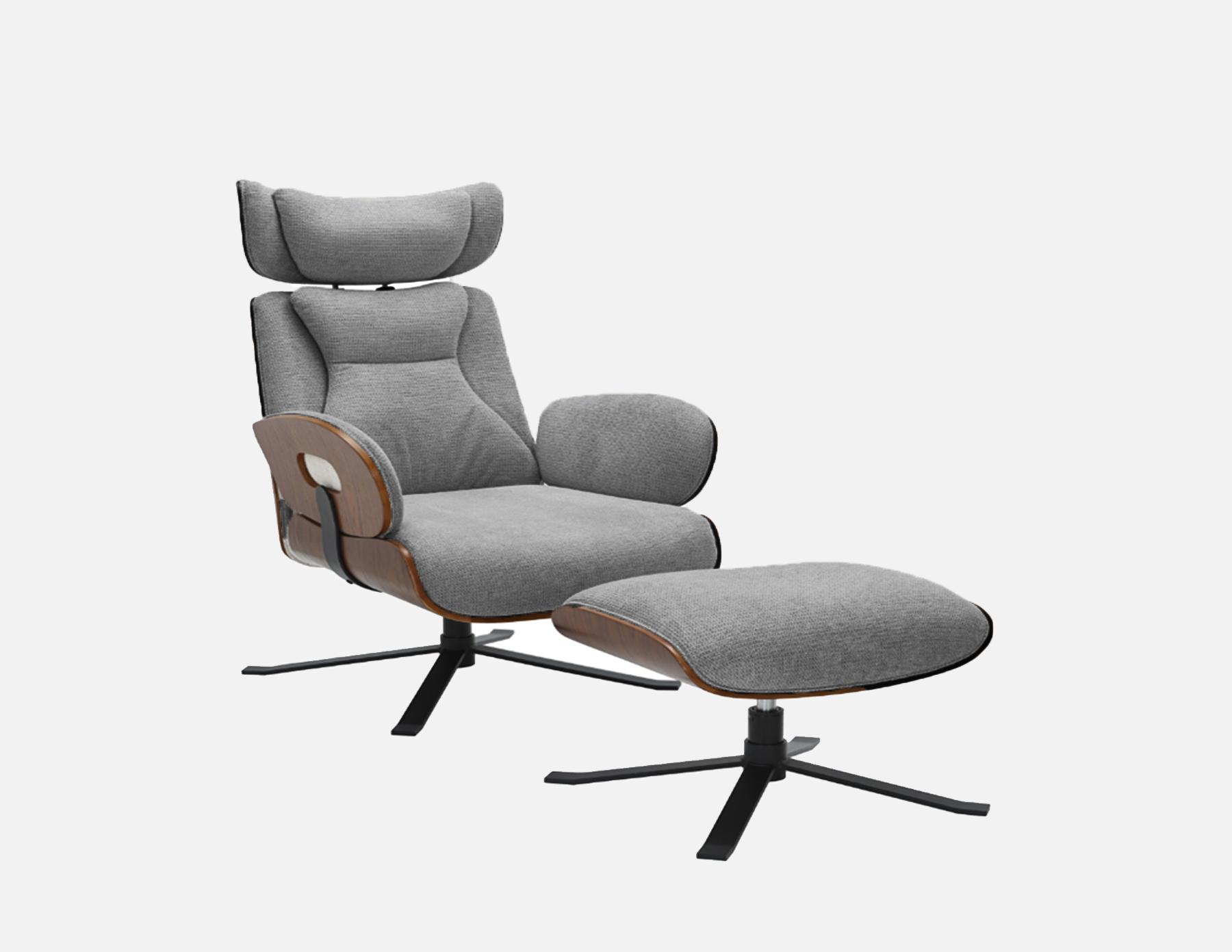 Upholstered in soft, textured fabric, the generously cushioned seat and ergonomic backrest cradle your body, while the adjustable headrest provides personalized neck support. The matching ottoman allows you to fully stretch out and unwind after a long day.