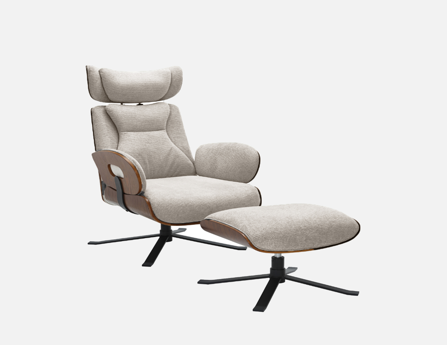 Upholstered in soft, textured fabric, the generously cushioned seat and ergonomic backrest cradle your body, while the adjustable headrest provides personalized neck support. The matching ottoman allows you to fully stretch out and unwind after a long day.