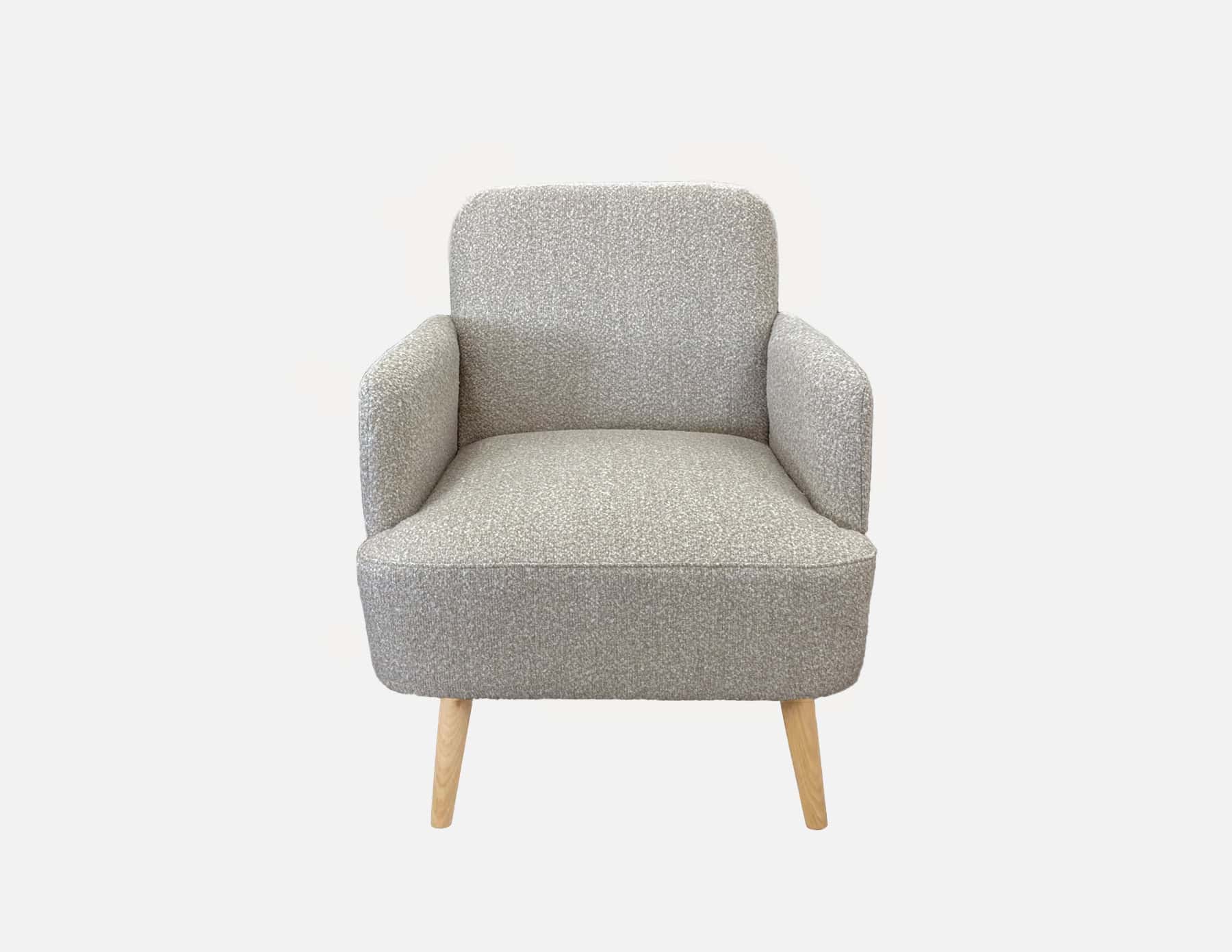Elevate your living space with the Margot Chair, featuring a textured bouclé fabric that adds warmth and modern character. Designed for both comfort and style, this chair is supported by solid wood legs for lasting durability and a natural touch.