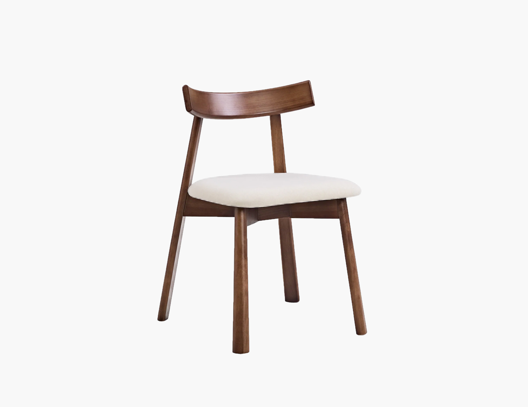 Crafted from premium solid hardwood, this elegant dining chair combines timeless craftsmanship with modern sophistication. Its gently curved backrest is uniquely sculpted to provide both comfort and visual appeal, echoing the clean lines and organic forms of mid-century design.