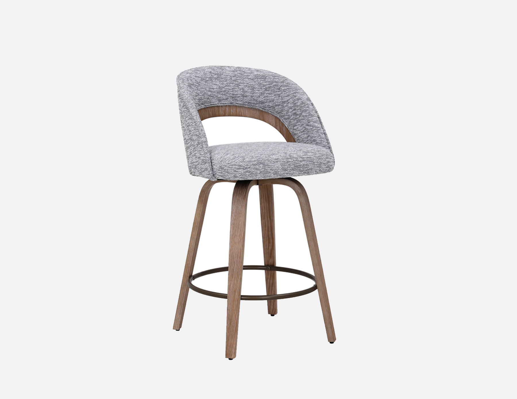This modern minimalist chair embodies a clean and sophisticated style, seamlessly merging upholstery with warm wood tones. Its versatile aesthetic enhances a variety of interior themes, from industrial chic to Nordic simplicity and understated luxury. Designed for functionality, the swivel feature allows for effortless movement, making it suitable for diverse operating needs. The semi-enveloping backrest, defined by smooth, rounded lines, aligns perfectly with the natural curve of the spine, offering comfort alongside a visually appealing softness. The generously cushioned seat, crafted from high-quality materials, not only radiates elegance but also provides excellent elasticity for long-lasting comfort. The wood frame showcases a natural warmth, highlighted by distinctive grain patterns that contribute to the piece’s charm. A gracefully arched wooden structure supports the backrest, creating a beautiful contrast with the upholstered seat and enhancing the interplay of materials. Complementing this design is a circular metal footrest, which adds both style and practical functionality, resulting in a cohesive piece that fits effortlessly into any modern living space.