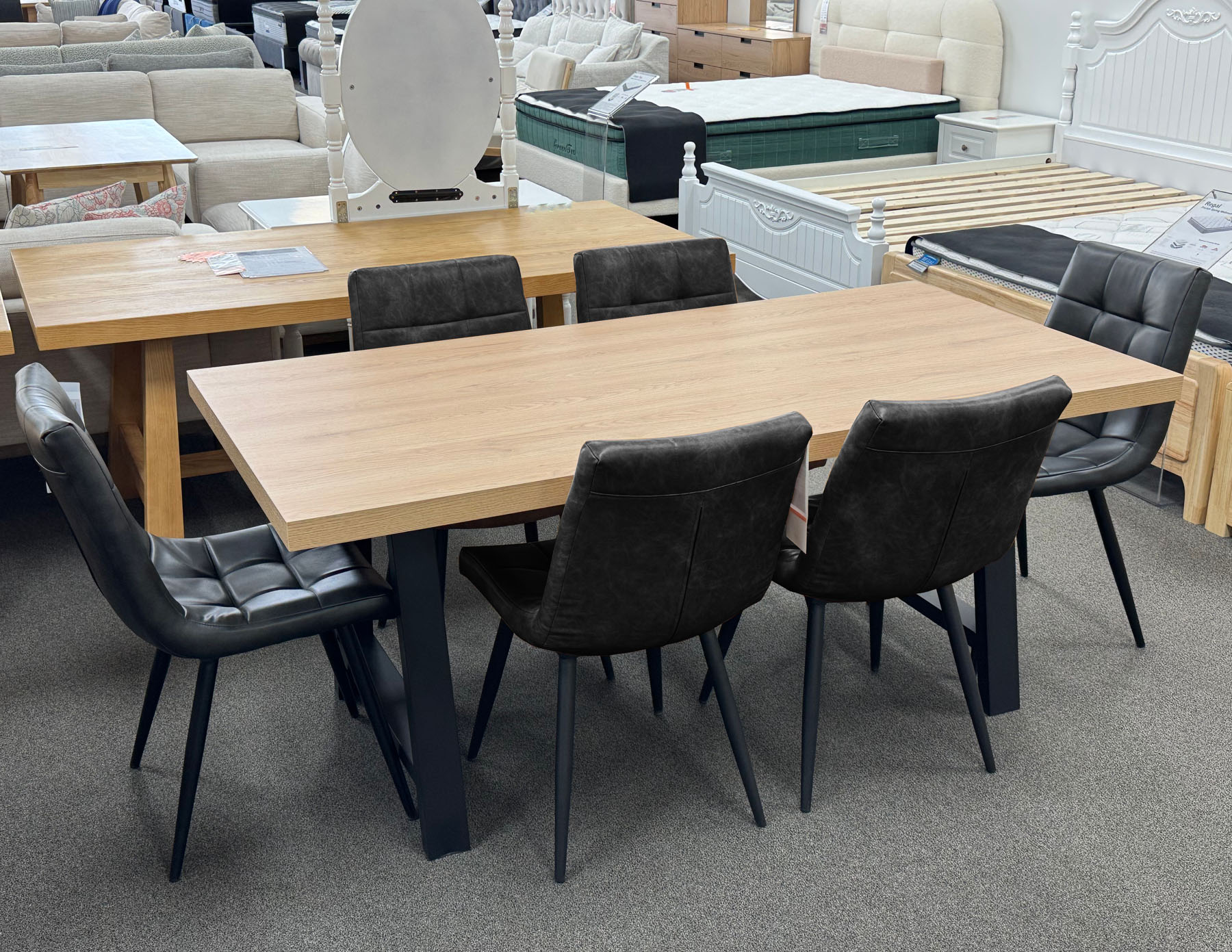 Russell Dining Table Oak Color With 6 Black PU Chairs